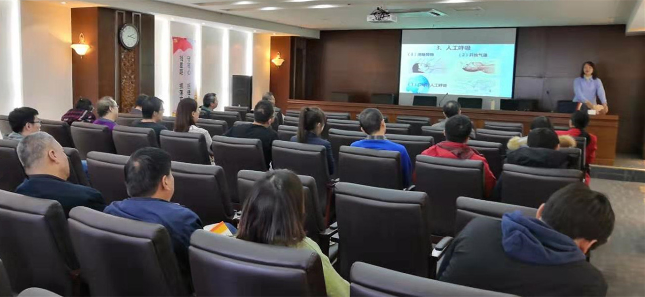 在培訓過程中,老師圍繞應對突發事故及突發急癥的院外“CPR”急救知識、環境污染的危害和個人如何防護、如何預防和改善高血壓、頸椎病、腰肌勞損等職業病和慢性病以及當前倡導健康的生活方式等方面的知識,結合案例全面細致地講解。期間,還通過現場急救示范,與員工互動,使大家在輕松愉悅的氣氛中掌握了環境及職業健康知識。