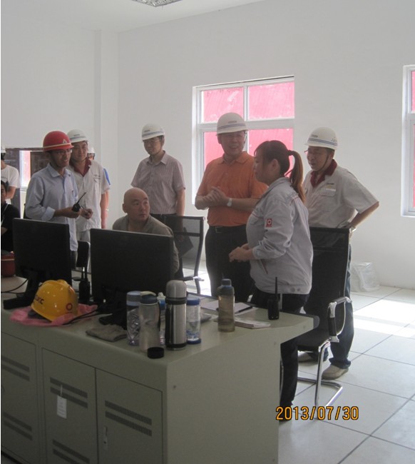 7月30日上午9時,夏日炎炎驕陽似火,總裁胡也明來到中聯美景水泥有限公司4000t/d水泥熟料生產線配套余熱發電項目建設工地,深入到循環水、窯頭鍋爐、窯尾鍋爐及汽輪機房施工區域認真查看了現場施工情況,并對現場中存在的安全問題進行了指正。在汽機控制室,胡總仔細詢問了電站操作人員的日常工作、學習情況,并向施工、調試人員了解設備安裝和系統調試的進展。